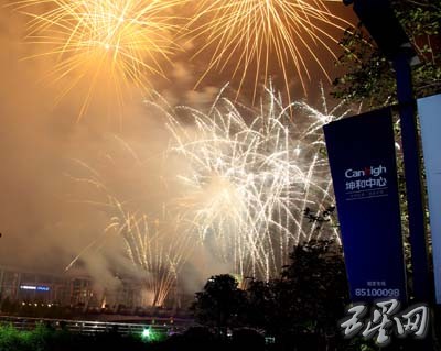 文章导读: 10月16日晚7点40分,京杭大运河杭州武林门段河面烟花盛开,坤和中心在夜色与烟花映衬下,城市皇冠分外隽逸。运河武林门段作为本届2010第十二届西湖博览会烟花盛会运河分会主场,两岸高楼林立,繁华如锦。而雄踞武