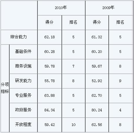 杭州的基础条件、商务设施、研发能力、专业服务、政府服务和开放程度六个分项指标发展均衡,大部分指标均排在前八位。