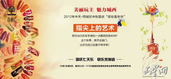 文章导读:美丽玩主魅力城西 中天·西城纪中秋国庆缤纷嘉年华靓丽起航 枯燥的上班结束,精彩的长假即将起航,中天·西城纪特别为广大新老业主准备了为期6天的嘉年华,活动期间至展厅可免费体验美甲、彩妆、造型,还