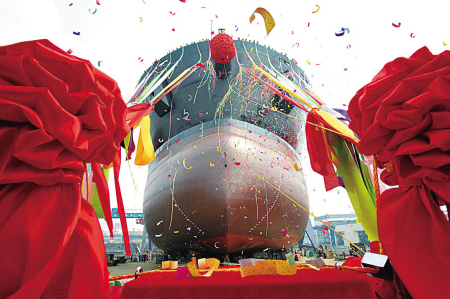 昨日成功下水的“旗祥11”号载重量为5.3万吨,船长190米,最大航速可达每小时15.3海里。