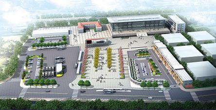 东站配套工程包括站前集散广场、道路、公交车出租车停靠站点和临时商业用房等。其中站前集散广场占地8000平方米,广场中心有一个“凹”字形休息台,供旅客休息。公交广场在站房东侧,目前已经确定有14条公交线路在这里停靠始发。出租车上下客点则在西侧,出租车可以从广场北侧道路进入环形区域,然后左拐弯,穿过半环形通道,再上下客。此外,广场的西边是一栋两层的临时商业用房,面积有2200多平方米。