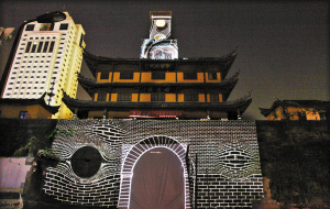 鼓楼超炫的3D光影效果引人注目