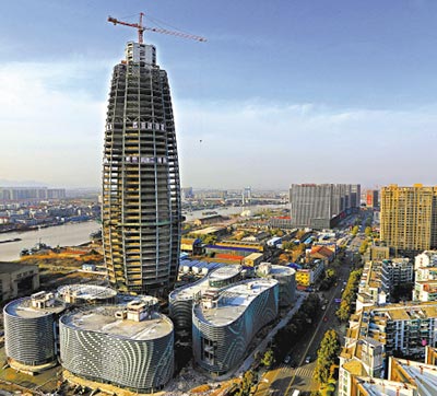 位于东外滩的宁波财富中心主体建筑高度188米,外形似一朵含苞待放的郁金香,建成后将成为我市富有特色的城市地标。据悉,该项目6月底前将完成主楼结顶,12月份完成幕墙施工。