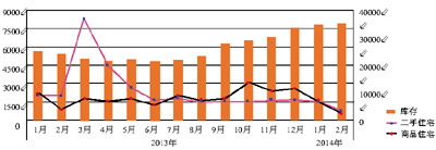 但在入市新盘渐趋增加的同时,市场库存在上月再创历史新高。市房产交易中心的数据显示,截至上月底,市区普通商品住宅库存套数达34905套,库存面积为507.6万平方米。而去年一整年,市区商品住宅总销售套数是22863套,成交面积在300余万平方米。