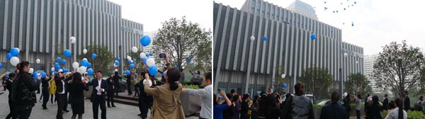 在昨天的成立仪式上,“图书漂流”活动正式启动,鼓励楼宇白领把闲置的书贡献出来,放在书架上,让书开始一段文明美丽的奇妙旅程。