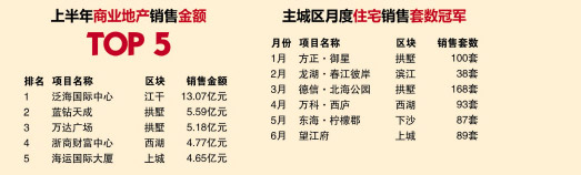 上半年商业地产销售金额TOP5 主城区月度住宅销售套数冠军
