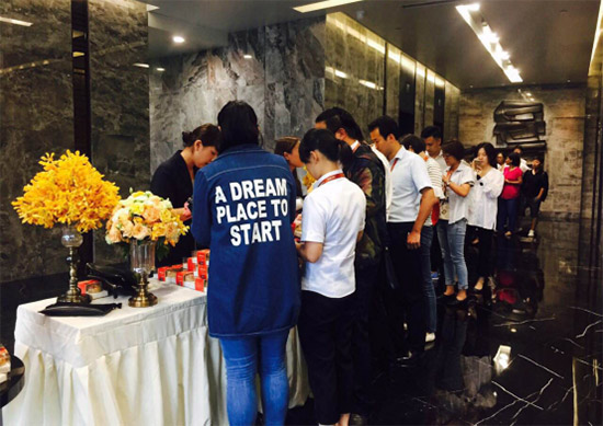 “中秋节武林时代给大家送蛋黄酥了!”消息传开后,闻讯而来的员工们很快将活动展桌围满,但现场依然井然有序,踊跃参与的他们自觉排好长队,开心又耐心地等待着,有条不紊地领取属于自己的礼品。平时安静肃穆的写字楼,因为此次送礼活动,顿时充满了浓厚而温情的节日气息。“去年圣诞节也送礼品了,今年周年庆还发小蛋糕了!感觉武林时代不仅仅是写字楼,更像一个大家庭!”拿到蛋黄酥的职员对武林时代赞不绝口!