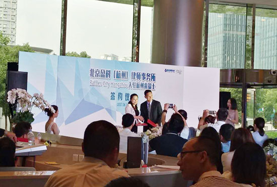 开业仪式上,杭州来福士中心总经理黄加勇先生与与北京盈科(杭州)律师事务所执行主任刘春晓女士、杭州京歌科技有限公司代表董事长任金风女士分别举行了签约仪式。中国来福士综合体项目办公楼租赁总经理先生梁耀华先生带领现场嘉宾一起,开启来福士办公楼启动仪式。全场观众拿起手机为来福士助力,现场一片欢呼沸腾,活动达到高潮。