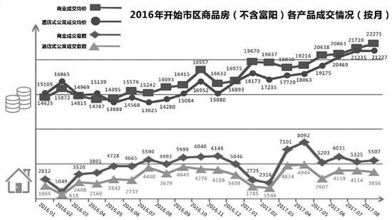 钱江晚报记者研究数据时发现,其实商业地产的成交均价也在逐月上涨,中国指数研究院的数据显示,2017年8月,杭州市(不含富阳)商业地产成交均价为22271元/平方米,是近一年半以来的新高。