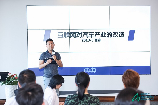 典典养车创始人兼CEO费岸先生于2014年创立了杭州小卡科技有限公司,推出了汽车后市场的互联网创新品牌——典典养车。在短短一年内完成了三轮融资,将典典养车打造成为估值5亿美金的黑马企业。他在演讲时谈到:技术进步带来产业升级,如今中国的第二次互联网创业潮涉及到各个领域,包括金融、电商+新零售、云服务、汽车、物流、沟通、内容信息、出行、本地生活等,而通过交易、匹配撮合、大数据、算法等四步可以建立起自己的核心价值,更好地应对汽车产业互联网结构。
