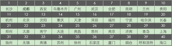 在商业地产潜力城市十强中,8个为中西部城市。其中、长沙、成都、西安位列三甲,而北上广深都与之无缘。另外,乌鲁木齐、广州、武汉、合肥、昆明、兰州、贵阳紧随其后,成为下一轮商业地产发展的潜力股。