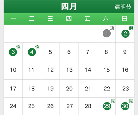 三、清明节:4月2日至4日放假调休,共3天。4月1日(星期六)上班。
