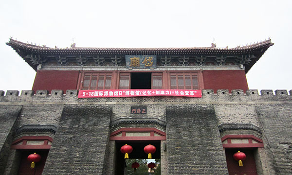 遥参亭为岱庙的前庭,奉泰山奶奶碧霞元君像于其中,听导游说,参拜的时候还有讲究,跨进殿内男人要先跨左脚,女人先跨右脚。出了岱庙坊,就是正阳门,两扇朱红大门,门上镶有81个铁制馒钉,有铺首,象征着岱庙的尊严,古时候只有帝王才能从此门进入。正阳门高8.6米。