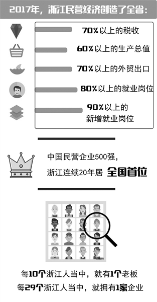 民营经济是浙江的金名片,浙江改革开放的历史,就是民营经济的发展史。中国民营企业500强,浙江连续20年居全国首位。
