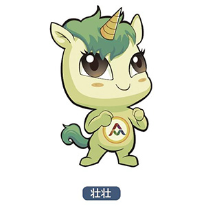 “壮壮”以嫩绿色为主色调,寓意萌芽,体现了茁壮的生命力,也展现出“双创”的核心精神。形象以稀有、勤劳、进取的独角兽为原型,体现创业者的探索钻研精神。独角兽不仅是每个创业公司的期待、愿景,也特别能突显努力上进的创业者品质。