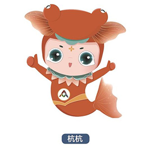 “杭杭”是一条灵动、富有灵气的金鱼,是杭州的代表性动物。杭州依水而建、因水而兴,并将水文化的包容、创新具象化,形成了“雨林式”的“双创”生态,而每一位创客就像一条金鱼,如鱼得水,鱼水交融,相得益彰。“杭杭”的创客之眼象征创业者独具慧眼、思维广阔,西湖荷花领饰、眉心桂花等具有浓郁地方特色。