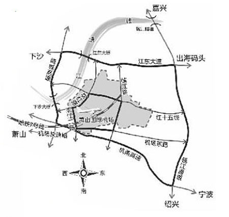 这个路网建成后,以萧山机场为中心,往北经钱江隧道去嘉兴、上海,往南走钱江大道去绍兴,往东经杭甬高速去宁波,往西走下沙大桥、江东大桥到下沙,都十分便利。