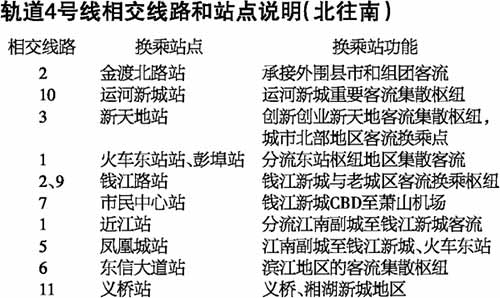 4号线穿越火车东站后沿新塘路向南,经过景芳居住区,与2号线、9号线形成换乘后沿富春路深入钱江新城核心区。