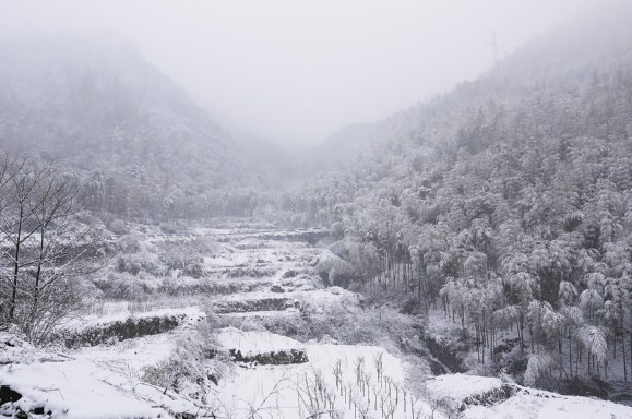 昨天凌晨开始,宁波市和余姚部分地区飘起了飞飞扬扬的雪花。至上午7时,我市降雪停止并迅速融化,而余姚四明山区直到中午前后雪还在下个不停,地上积起了厚厚的一层。图为记者昨天10时半摄于梁弄东溪村。