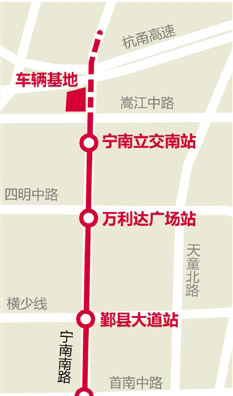 据介绍,宁波市鄞州区现代有轨电车实验线一期工程,起于南大东路站,沿天童南路向北至鄞州大道,线路长约3.85公里;经鄞州大道与天童南路路口向西转入鄞州大道,行进至宁南南路,线路长约0.75公里;经鄞州大道与宁南南路路口向北转入宁南南路,行进至嵩江中路,线路长约3.56KM。