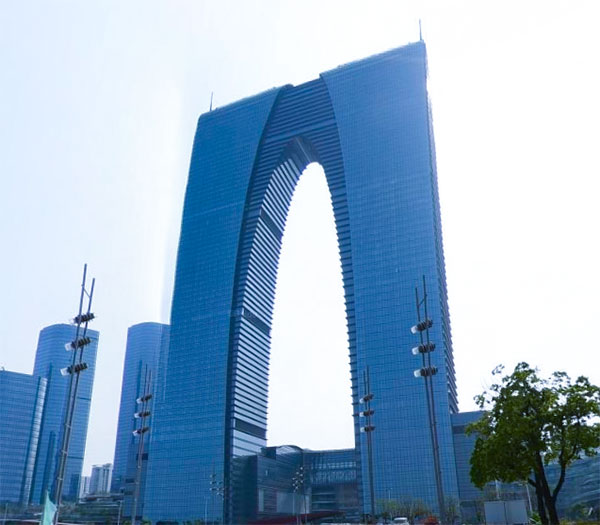 从2004年拿地之日起就备受关注的苏州第一门“东方之门”,于2015年3月底玻璃幕墙全面完成,46万平米的苏州地标建筑竣工,内部装修已完成70%,将于今年交付使用。