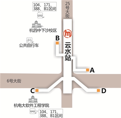 地铁1号线下沙延伸段长约5.6公里,共设文海南路站、云水站、下沙江滨站3座车站。