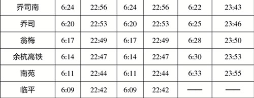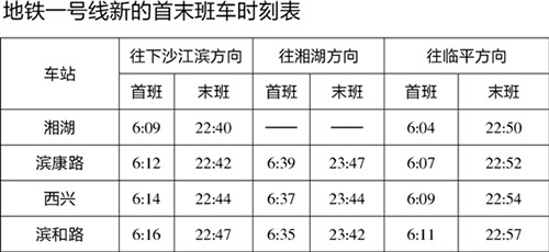 首末班时间微调,以湘湖站为例,开往下沙江滨方向,首班时间从6:10调整为6:09;末班时间从22:32分调整为22:40;往临平方向,首班时间从6:05调整为6:04,末班时间从22:40调整为22:50。