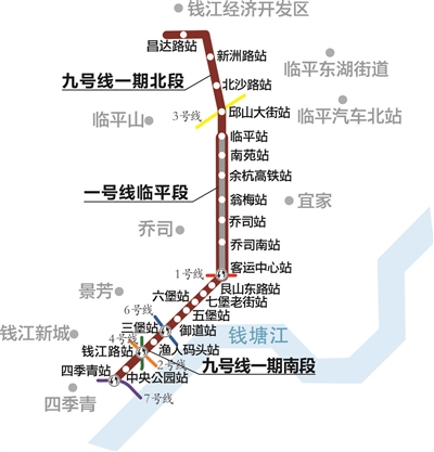 北段:1号线现临平站—昌达路站 南段:1号线现客运中心站—四季青站