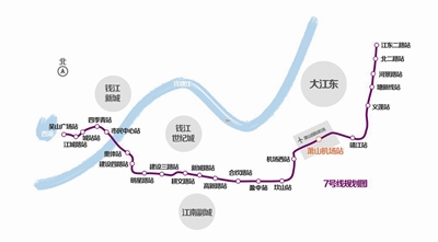 该线将城站火车站和萧山机场串连在一起,相对另一条到达机场的1号线三期,7号线站点少,间距长,速度更快。