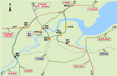 规划杭州南-萧山机场、杭温-杭黄铁路等联络线。