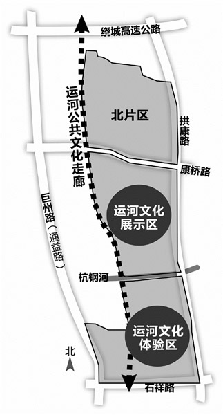 依托运河码头岸线、工业遗存等旅游资源,沿河打造总长5.8公里,总面积45公顷的运河公共休闲走廊,串联运河新城运动休闲生态区、文化休闲产业集聚区、都市休闲区。(原标题:城北新中心——运河新城计划明年开工 亚运会前基本建成 记者:叶怡霖 通讯员:计慎忆 制图:高薇)