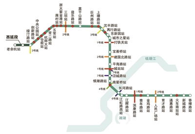 3号线自一期终点站文一西路站继续往北延伸穿越杭州西站至吴山前村站,延伸长度约4.8公里,规划延长线路主要沿良上线、龙舟路、创业路等敷设。