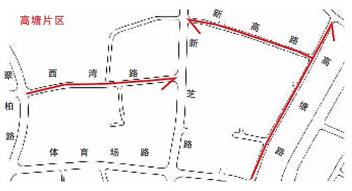 与此同时,以下路段将进行全天24小时交通管制,禁止机动车这样通行:在新高路(新芝路—高塘路)、体育场路(翠柏路—卖鱼路)自西向东;在西湾路(新芝路—翠柏路)自东向西;在高塘路(新高路—西河街)自北向南。