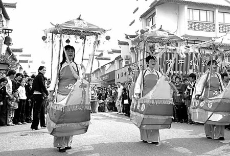 上图:旅游节现场举办的泗门竹龙、临山狮舞、花轿迎亲等民俗文艺大巡游,向人们展示了一幅魅力乡村旅游的“山水画卷”,吸引了众多游客观看。