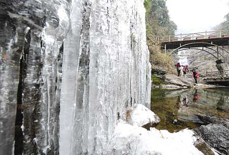 连日天气寒冷,昨天上午,在奉化市溪口旅游度假区三隐潭景区,上百处冰凌千姿百态,成为一道特别的景观,引来了不少游客。