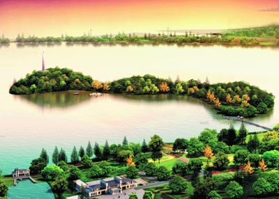 整个工程力求凸显生态效应及景观效果,把新慈湖建成一座集水功能、水生态、水景观和实用性、生态性于一体的水利工程。工程平面轮廓为慈溪版图形态,寓意新慈溪。在设计思路上,突出亲水理念,水库岸线由亲水木质平台、休憩小广场及码头等组成游客休闲区,体现湖库结合特色;突出综合功能,创造环湖生态植物链,作为农田和水库之间的过渡和隔离,发挥植物的过滤和隔离作用,改善和保护水库水质,改良土壤,保护水土。湖心岛地势起伏,植物茂密,伫立有海涂围垦文化标志物,体现生态景观和田园风光特色。