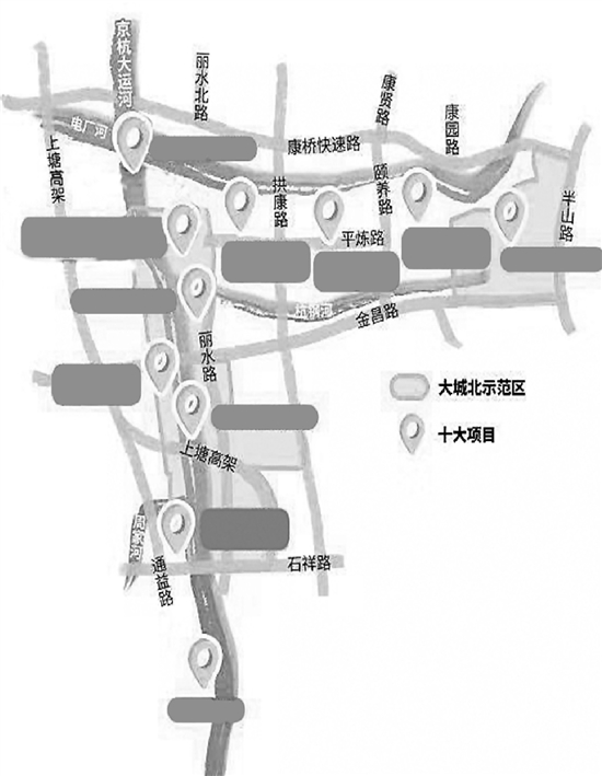 这么大的区域,划出了示范区,3.5平方公里,包括京杭运河沿岸和杭钢基地两大区块,将成为大城北有机更新的窗口和标杆。