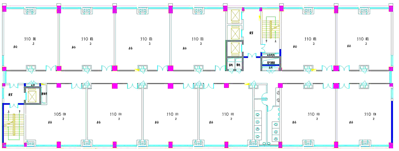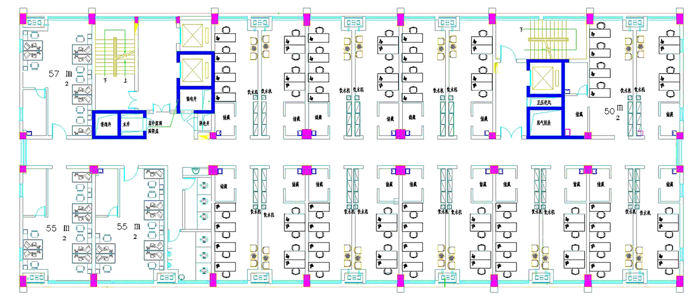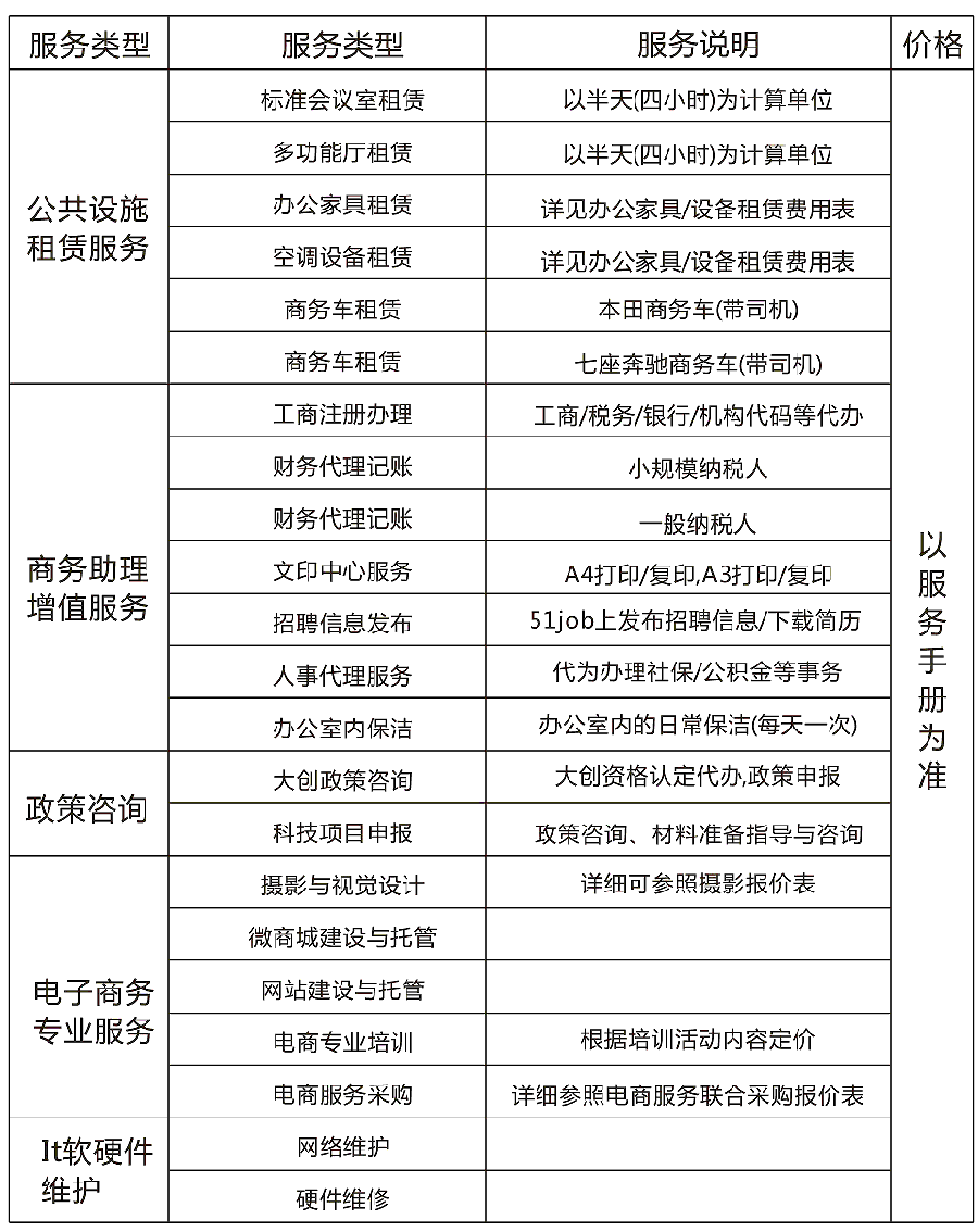 五号楼裙楼(1-3层)为商业用房,3-14层规划为创业基地。创业基地中每层除有四间单间建筑面积超过50平方的房间之外,全部为精装小户型的服务型创业办公室。