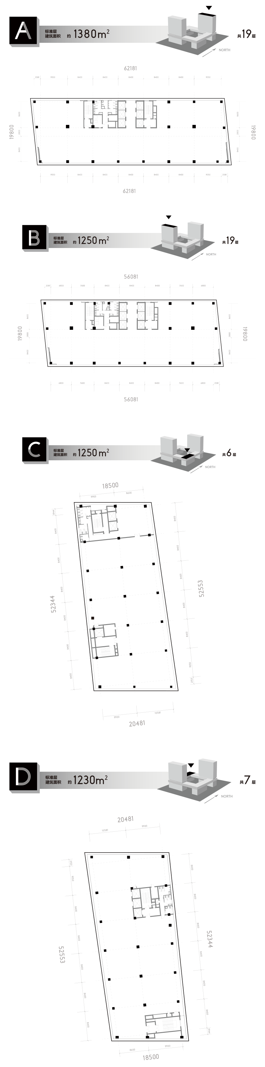 其中A、B座19层,C座6层,D座7层;